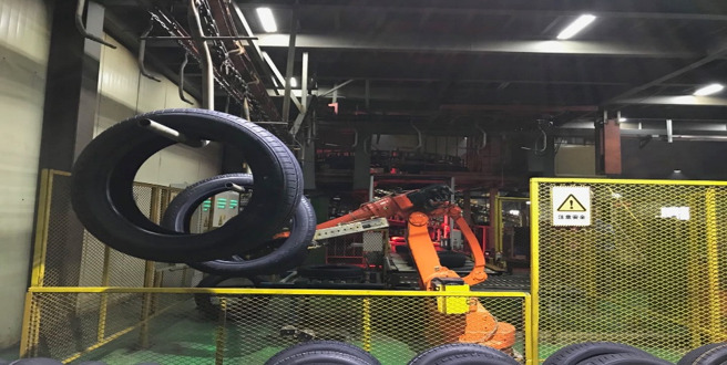 机械手系统主要应用于某橡胶轮胎企业的半钢子午轮胎流水生产线,该机械手系统要能够适应半钢子午轮胎搬运,要能够实现自动检测到达位置、实现自动抓取轮胎运至指定位置、松开爪子回到初始位置的全部过程,最终实现该半钢子午轮胎制造检测线自动化。