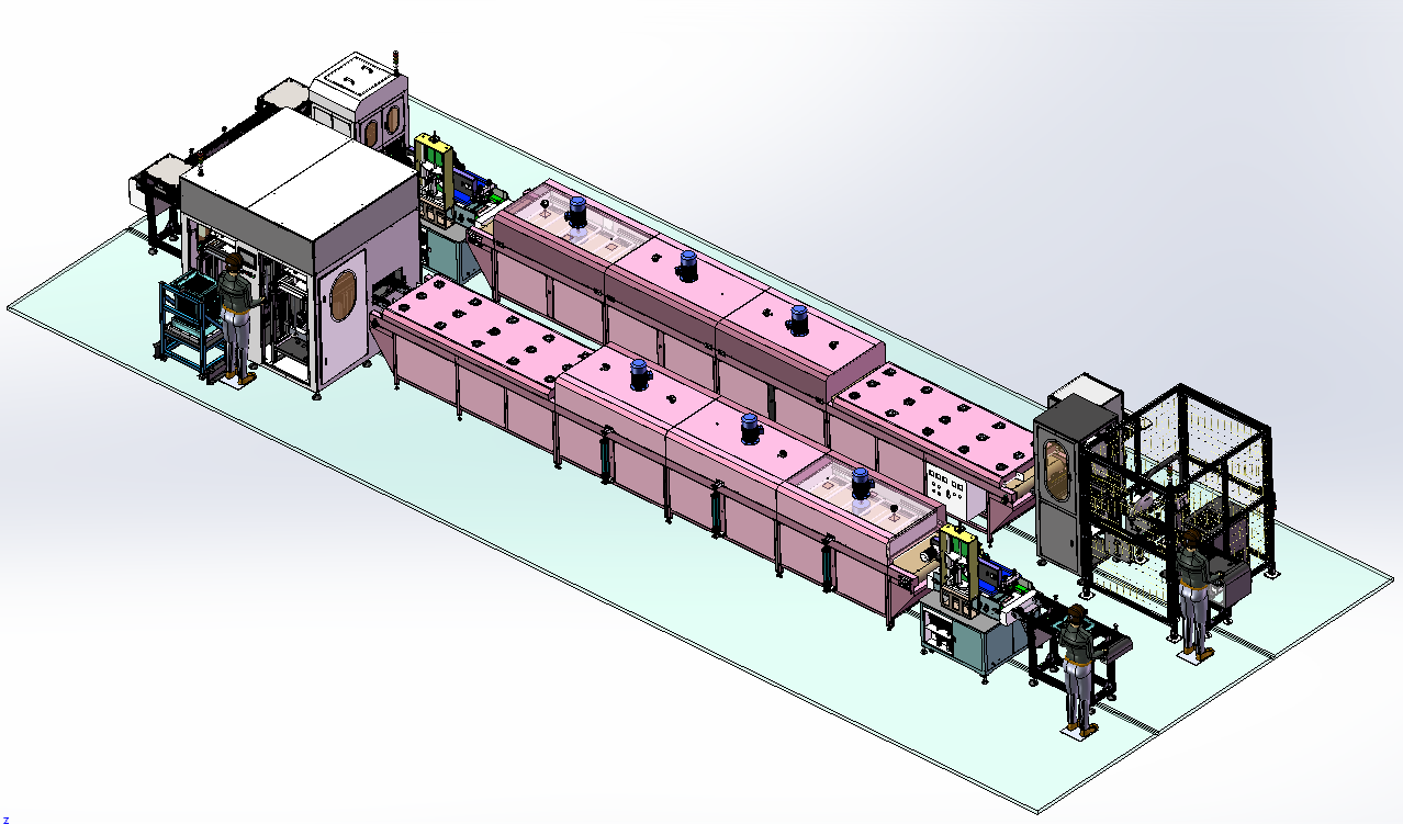 设备介绍:设备可以自动完成陶瓷环正反面的自动丝印、烘干、冷却及不良品记录与剔除。托盘由人工放置至输送线上,由输送线送至丝印机进行丝印,丝印完后烘干与冷却处理,翻转后经过移栽机送至缓存机,再经过丝印烘干冷却另一面,丝印烘干冷却完成后拍照检测机构记录两面数据,进行烘干冷却后由剔除机构把不良品剔除,整套流程完成后由人工取走托盘。